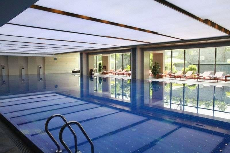 泳池位于酒店负一层,水深1.2-1.7m,水温26-28摄氏度,设有桑拿房、淋浴室、更衣室;
