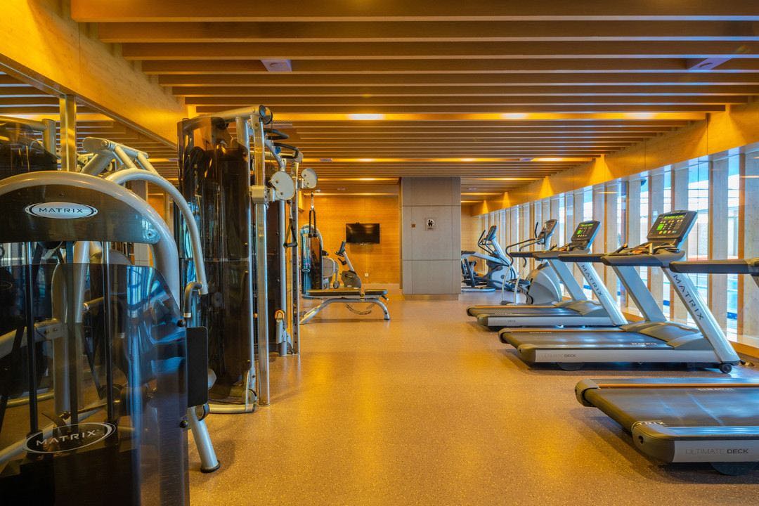 健身中心面积约为90平方米,配备跑步机、蹭步机、健身单车等有氧健身器材、力量健身器材等。